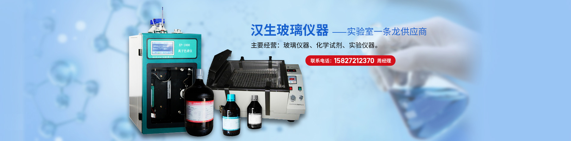 武漢市漢生玻璃儀器有限公司是國(guó)內(nèi)數(shù)家知名廠方的總代理和經(jīng)銷商,成立于1998年,是一家有著二十年經(jīng)驗(yàn)的老品牌公司。 【注冊(cè)資本】 : 500萬(wàn)元 【地址】 :湖北武漢市硚口區(qū)長(zhǎng)豐大道3號(hào) 【主要經(jīng)營(yíng)】 : 各種玻璃儀器、化學(xué)試劑、化工原料及實(shí)驗(yàn)室的裝修、儀器設(shè)備等,廣泛應(yīng)用化學(xué)實(shí)驗(yàn)、化工業(yè)、大專院校、藥業(yè)、食品企業(yè)等; 【主要產(chǎn)品】 : 實(shí)驗(yàn)室裝修,玻璃儀器加工、銷售,易燃液體,氧化劑,有毒品,腐蝕品(按有關(guān)部門核準(zhǔn)范圍經(jīng)營(yíng)),......